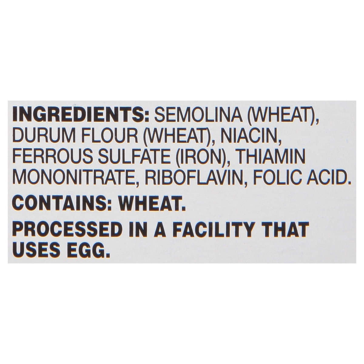 Semolina (Wheat), Durum Flour (Wheat), Niacin, Iron (Ferrous Sulfate), Thiamin Mononitrate, Riboflavin, Folic Acid.