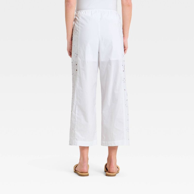 Women's Cropped Straight Leg Eyelet Pull-On Pants - A New Day™ White L