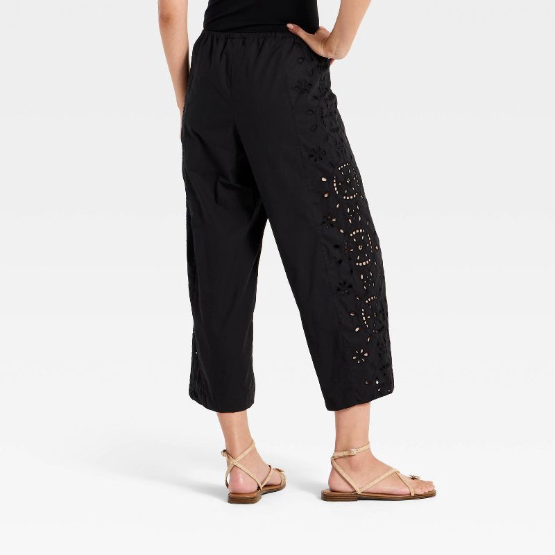 Women's Cropped Straight Leg Eyelet Pull-On Pants - A New Day™ Black M