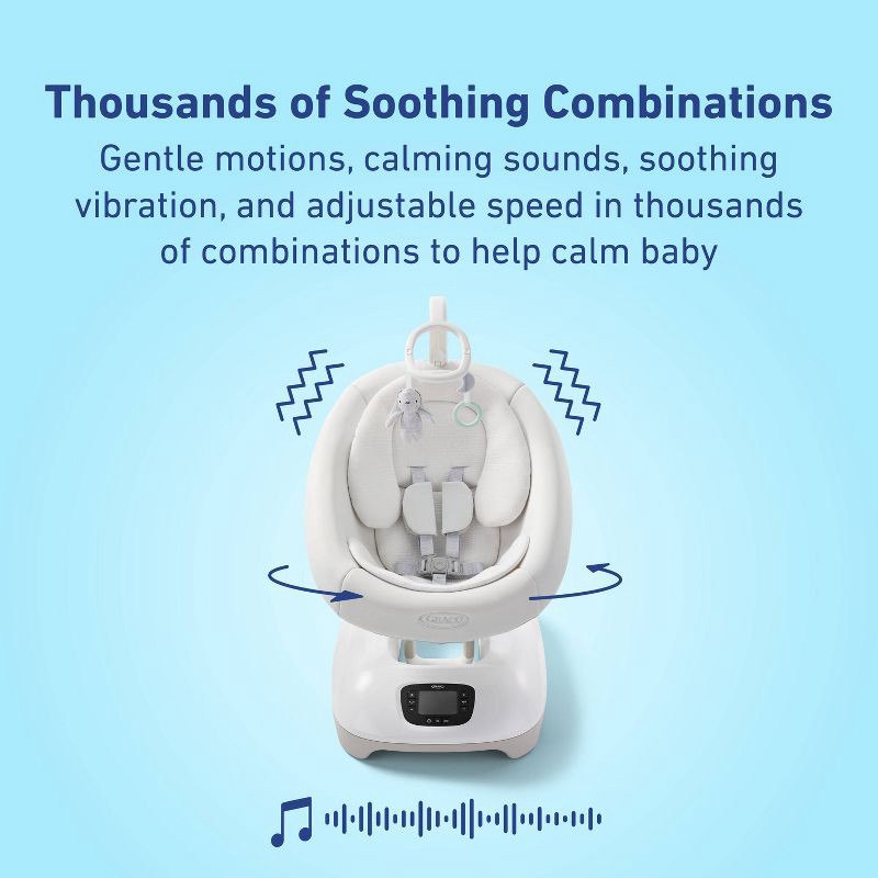 - Smart swing detects and automatically responds to baby's cries in seconds to help soothe and calm baby