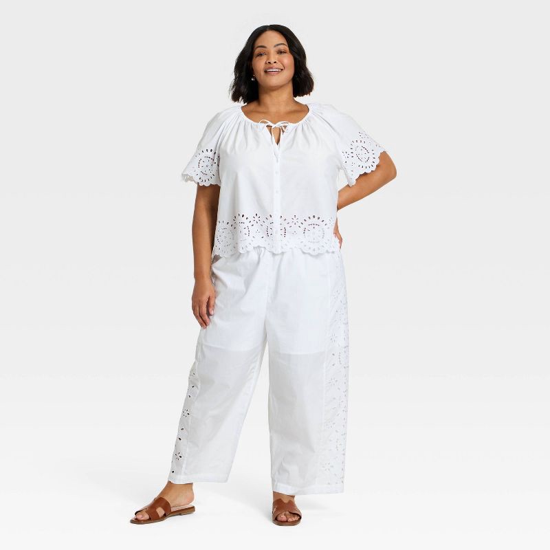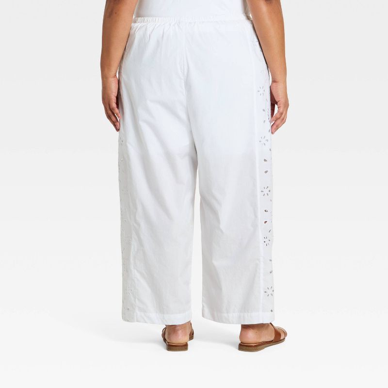 Women's Cropped Straight Leg Eyelet Pull-On Pants - A New Day™ White XXL