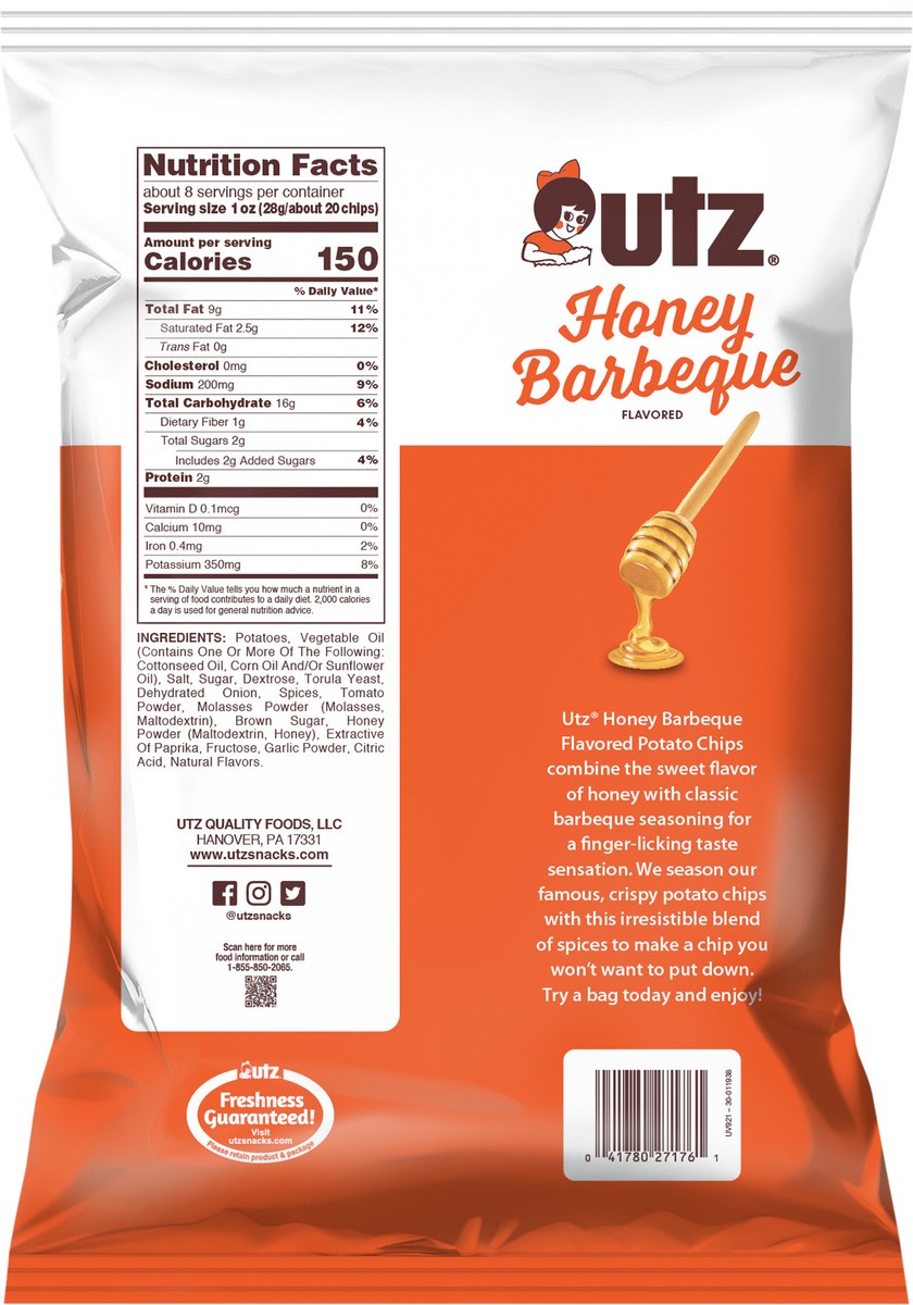 Family crafted flavor since 1921. UTZ Honey Barbeque Flavored Potato Chips combine the sweet flavor of honey with classic barbeque seasoning for a finger-licking taste sensation. We season our famous,…