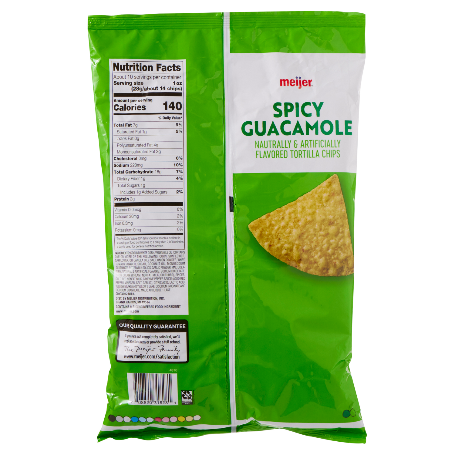 Enjoy the salty taste of a traditional chip with some extra heat with Meijer Spicy Guacamole Tortilla Chips. Pair with your favorite salsa or queso -- or even scoop up some more guac. There's no such …