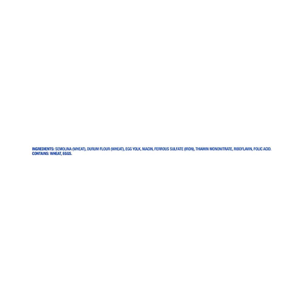 Ingredients: Durum Wheat Semolina, Durum Wheat Flour, Eggs, Niacin, Iron (Ferrous Sulfate), Thiamin Mononitrate, Riboflavin, Folic Acid.