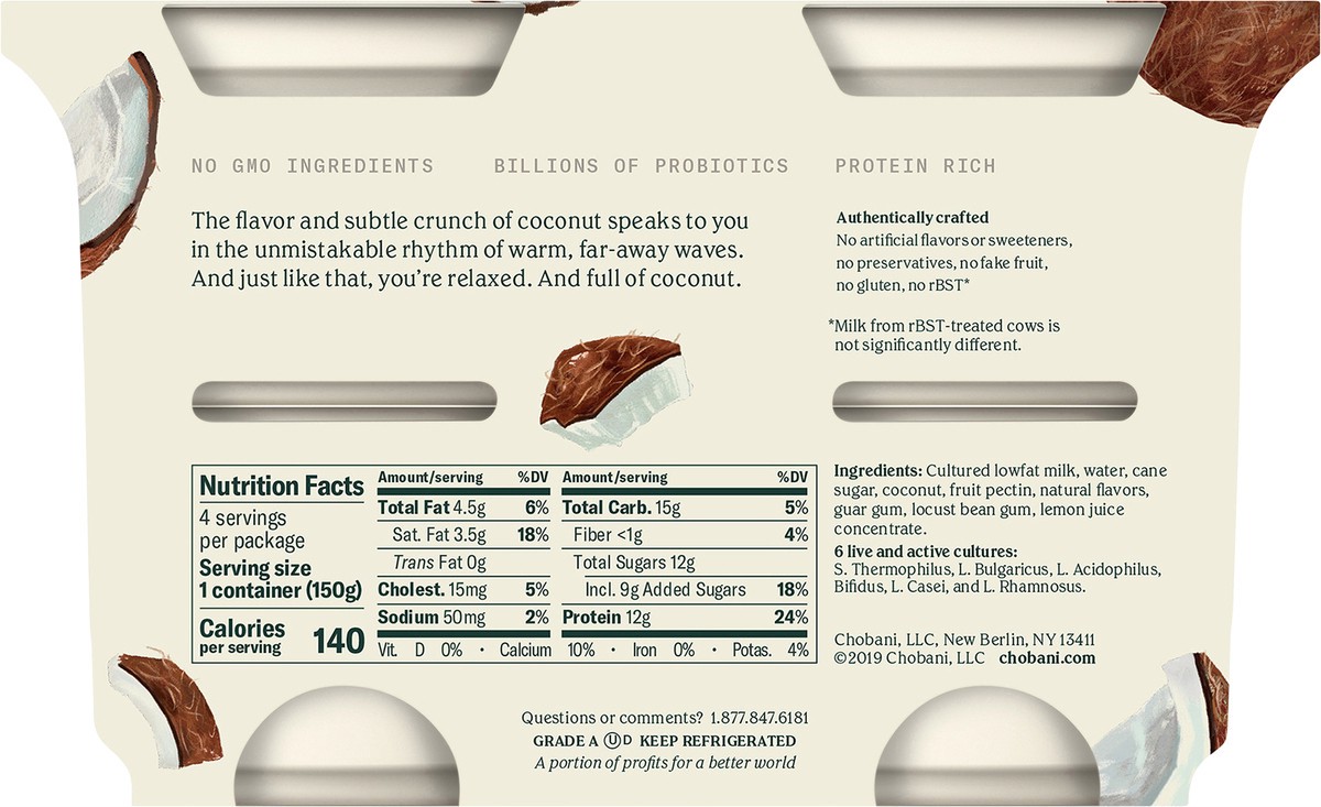 Chobani Low-Fat Coconut Blended Greek Yogurt - 4-5.3 Oz