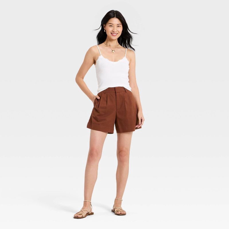 Women's Linen Pleated Shorts - A New Day™ Brown 6