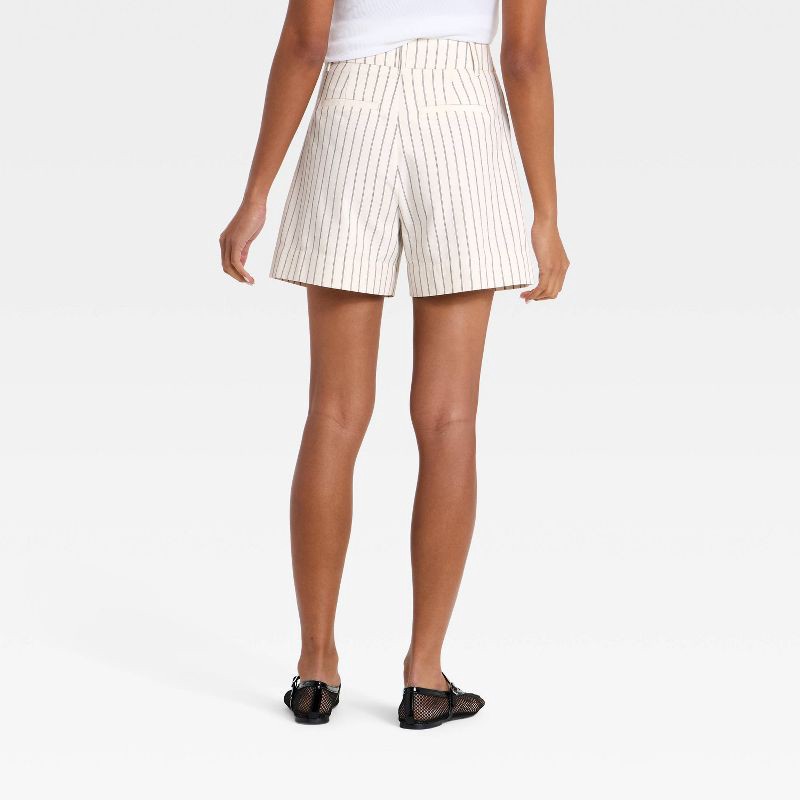Women's Linen Pleated Shorts - A New Day™ Cream Striped 16