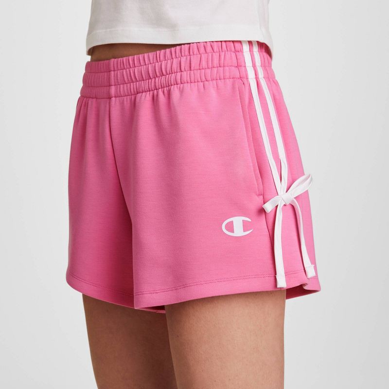 Sporty Ease with a Satin TwistSoft structure meets subtle shine in the Champion In The Stands Side-Tied Short. Crafted from smooth double-knit modal scuba, these women's shorts deliver next-level comf…