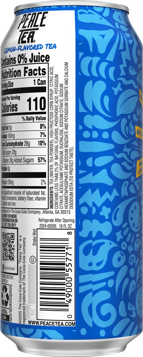 Peace Tea Caddy Shack Iced Tea with Natural Lemon Flavor, 16 fl oz Can