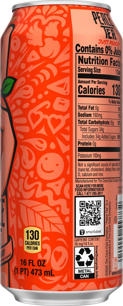 - No matter the time of daySpread peace and positivity with a canned iced tea that brings the joyful vibes16 fl oz can of Peace Tea Just Peachy