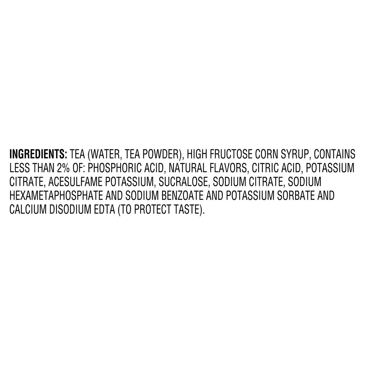 Tea (Water, Tea Powder), High Fructose Corn Syrup, Contains Less than 2% of: Phosphoric Acid, Natural Flavors, Citric Acid, Potassium Citrate, Acesulfame Potassium, Sucralose, Sodium Citrate, Sodium H…