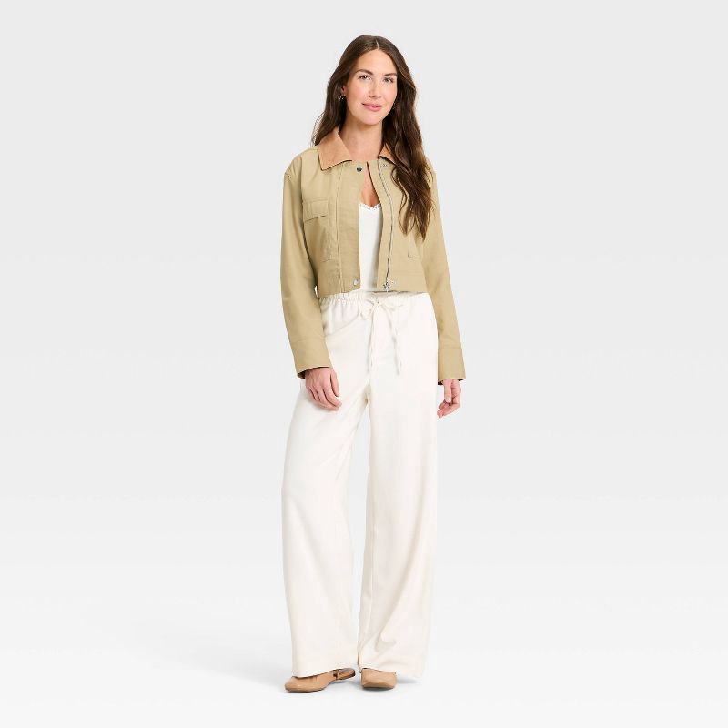 Slay in style with this Transitional Cropped Jacket from A New Day™. Made of cotton-lyocell blend fabric with 100% recycled polyester lining, this long-sleeve jacket offers cozy comfort. It is fashion…