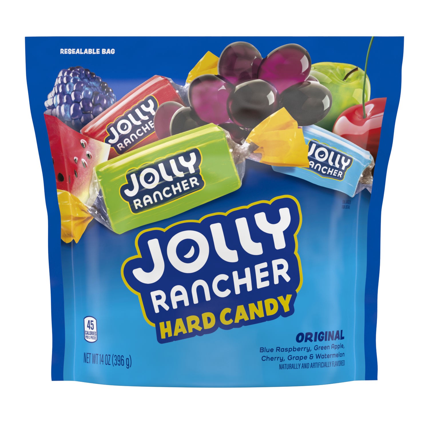 - Contains one (1) resealable 14-ounce bag of JOLLY RANCHER Assorted Hard Candy with Watermelon, Green Apple, Cherry, Grape and Blue Raspberry Fruit Flavors
