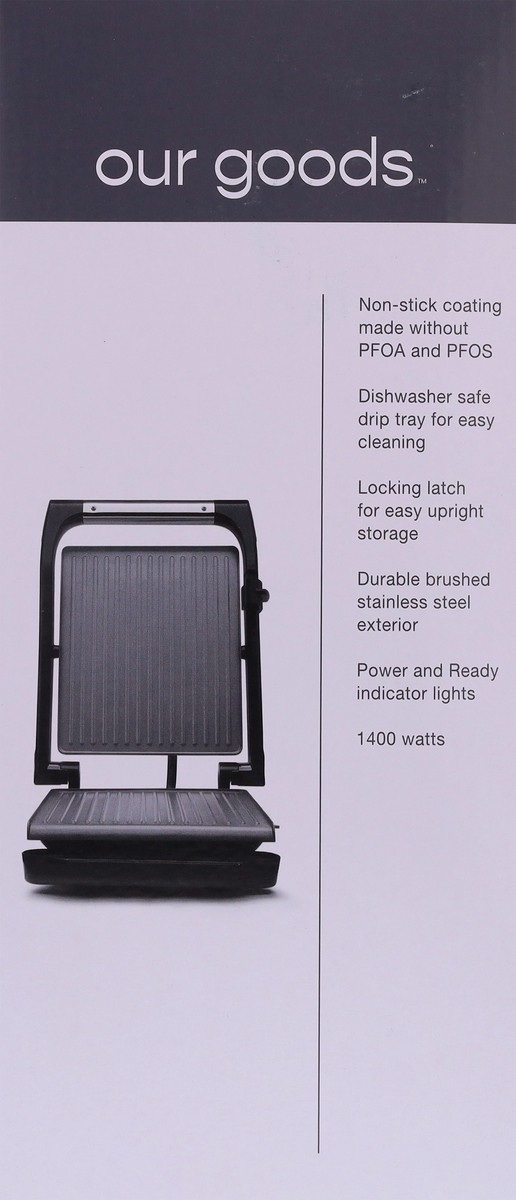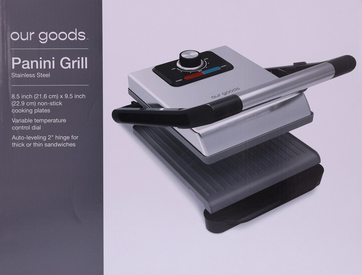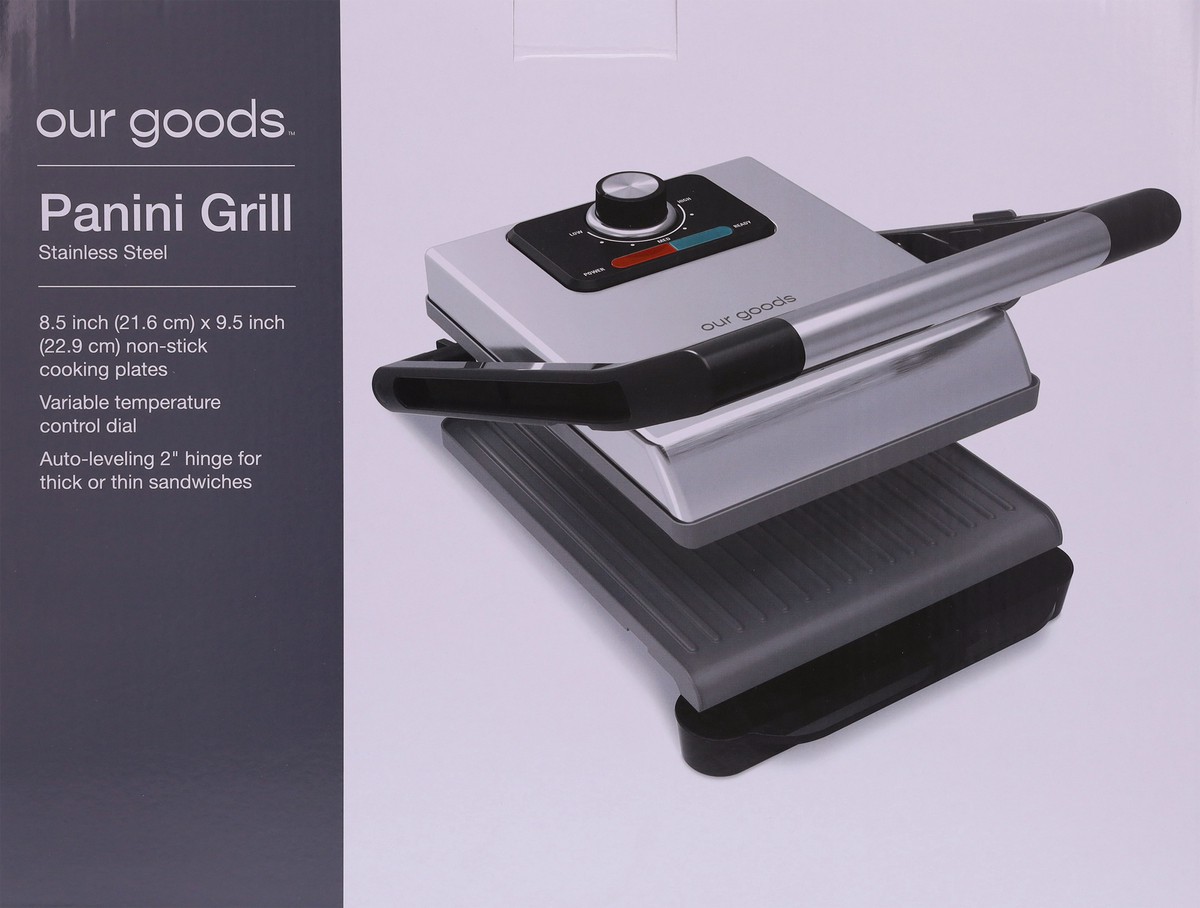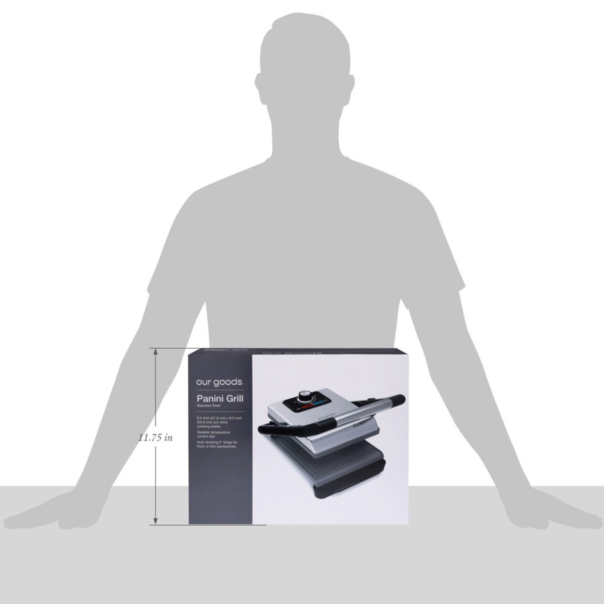 8.5 inch x 9.5 inch nonstick cooking plates Variable temperature control dial Autoleveling 2 inch hinge for thick or think sandwiches Finish Stainless Steel
