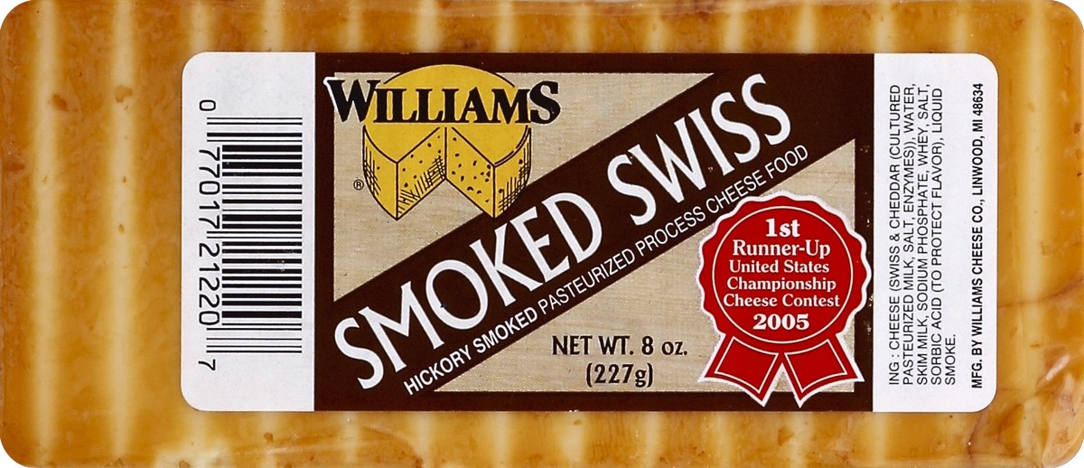 Cheese (Swiss & Cheddar (Cultured Pasteurized Milk, Salt, Enzymes)) Water, Skim Milk, Sodium Phosphate, Whey, Salt, Sorbic Acid (to Protect Flavor), Liquid Smoke.