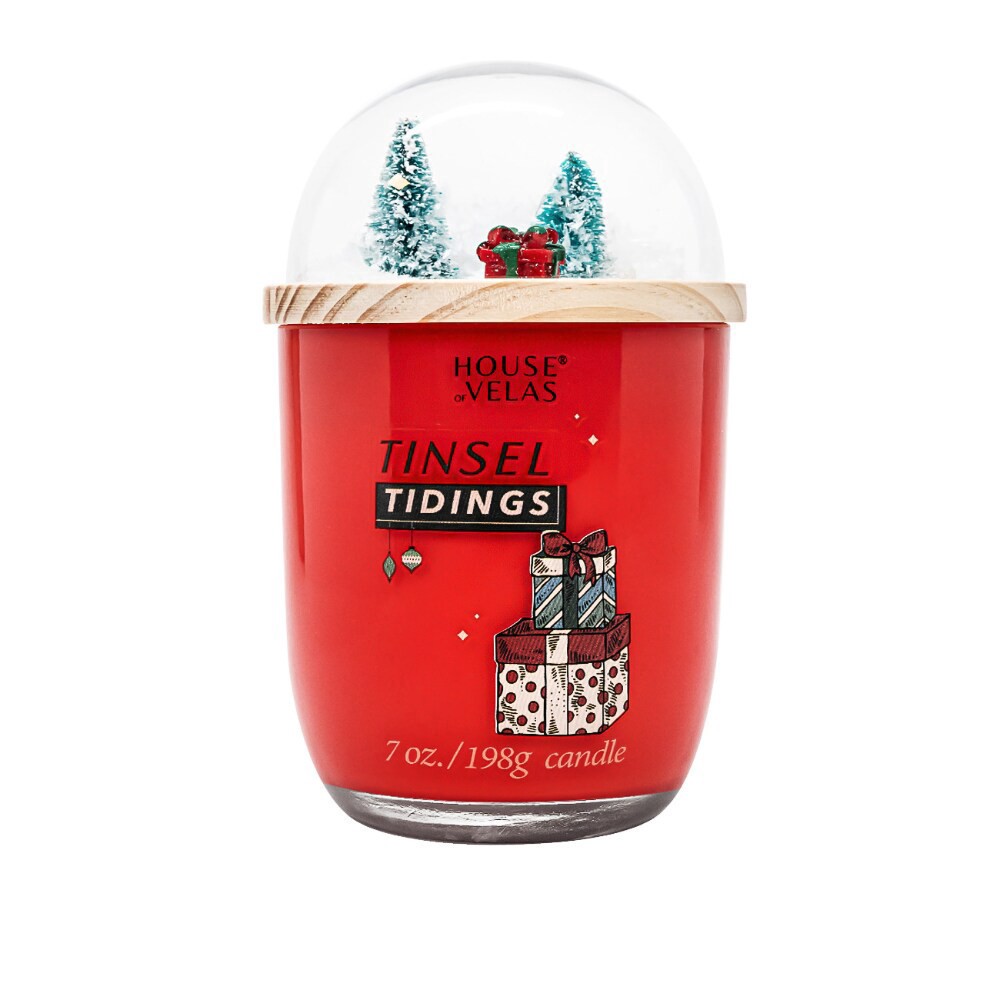 House of Velas Christmas Jar Candle Snow Globe Tinsel Tidings