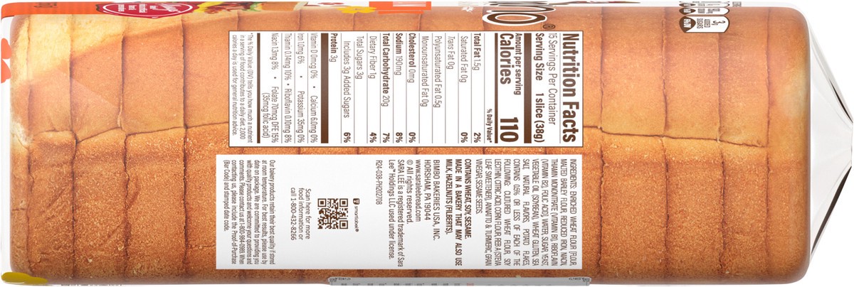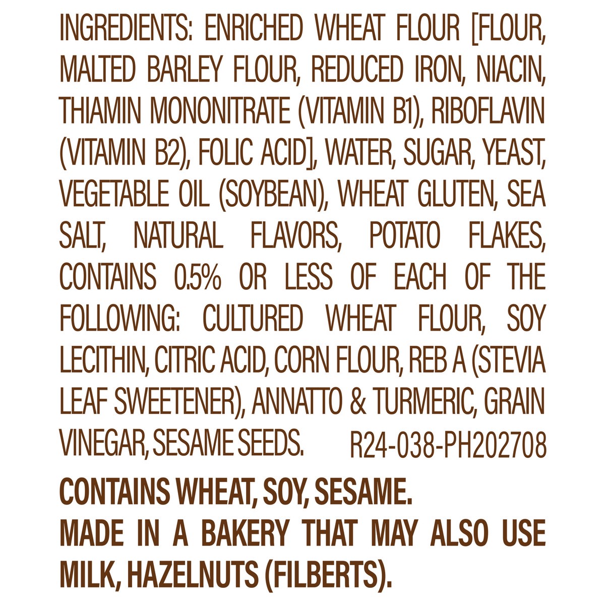 Enriched Wheat Flour [Flour, Malted Barley Flour, Reduced Iron, Niacin, Thiamin Mononitrate (Vitamin B1), Riboflavin (Vitamin B2), Folic Acid], Water, Sugar, Yeast, Vegetable Oil (Soybean), Wheat Glut…
