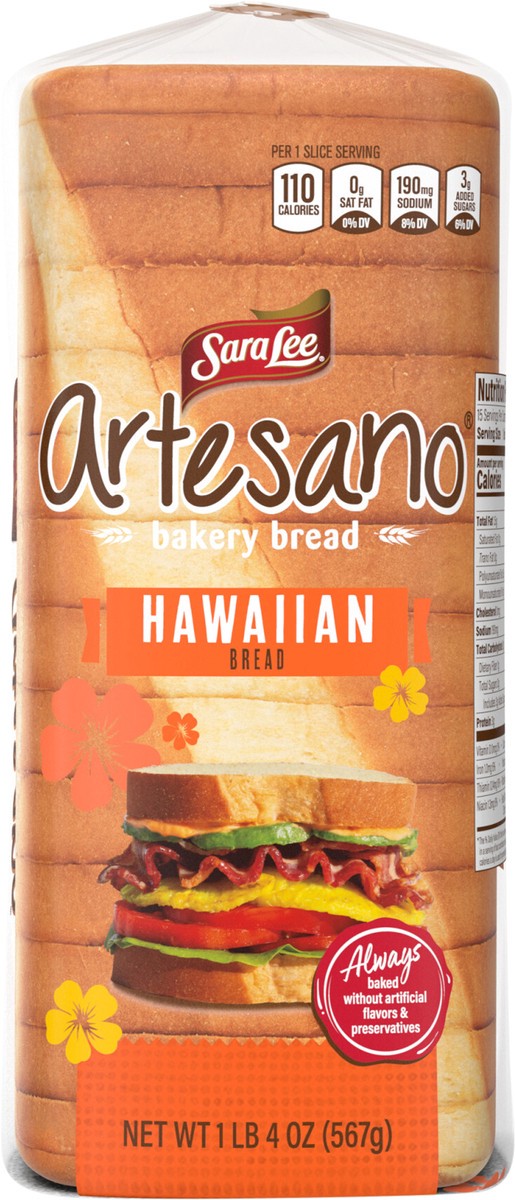 Bring home a slice of paradise with Sara Lee Artesano Hawaiian Bread. Made with the perfect amount of sweetness and a touch of sea salt, its thick slices and smooth texture make it ideal for truly rem…