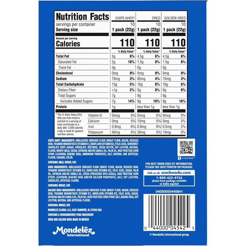- Full-size OREO cookies and CHIPS AHOY! cookies in convenient snack packs