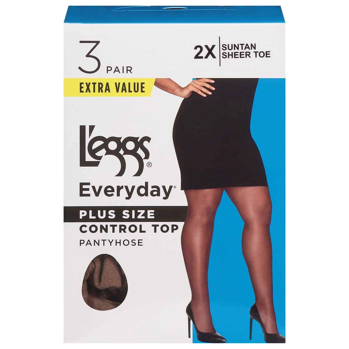 L'eggs Everyday Suntan Control Top Pantyhose Plus Size 2X Extra Value 3 ea