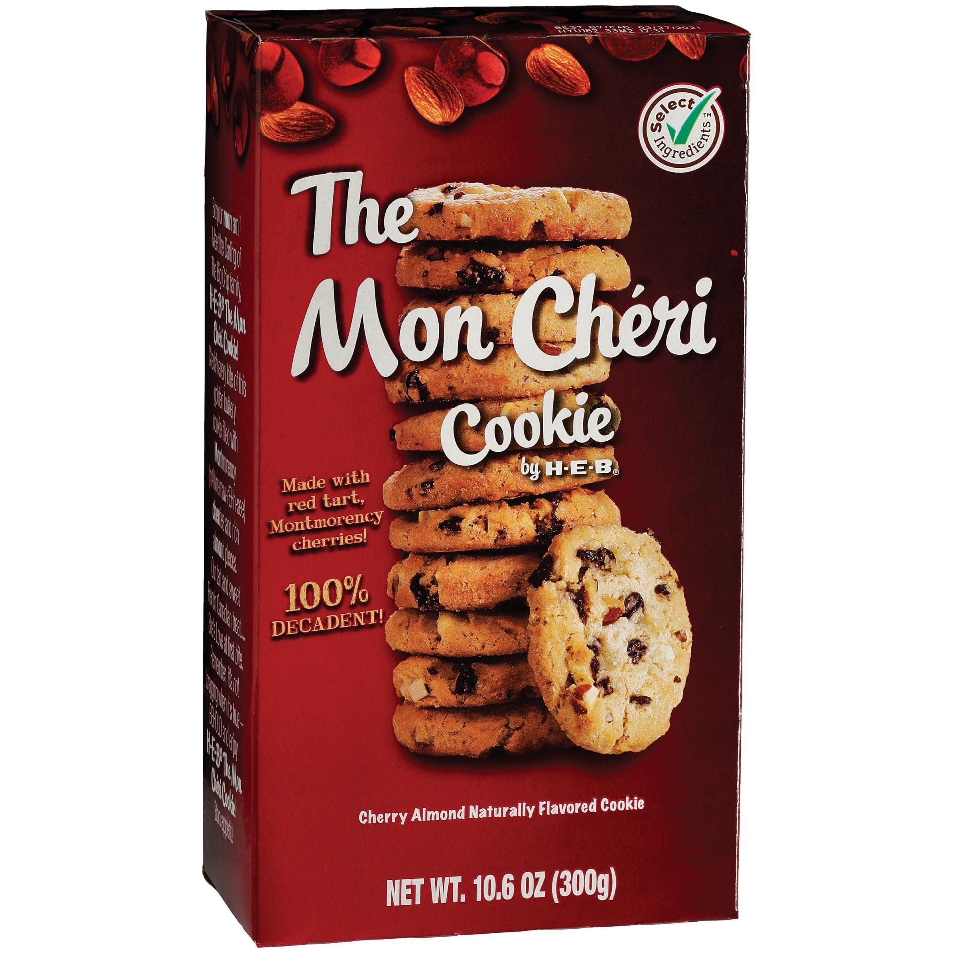 Bonjour mon ami! Meet the Darling of The Big Chip family, H-E-B The Mon Cheri Cookie! Cherish every bite of this golden buttery cookie filled with Montmorency (mAWnt-maw-rEHn-see) cherries and rich al…