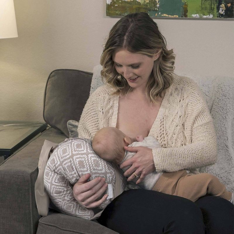 An ergonomic nursing pillow for feeding anywhere you go! Great for small living spaces, on-the-go, and breastfeeding moms recovering from a caesarean. Use at home, bring it with you on outings, or lea…