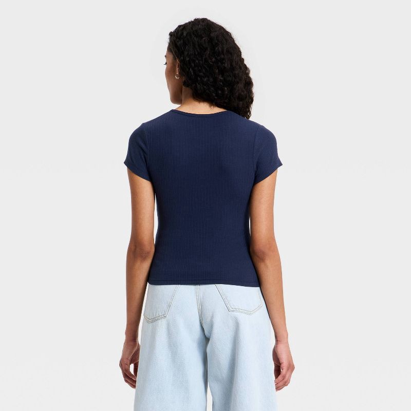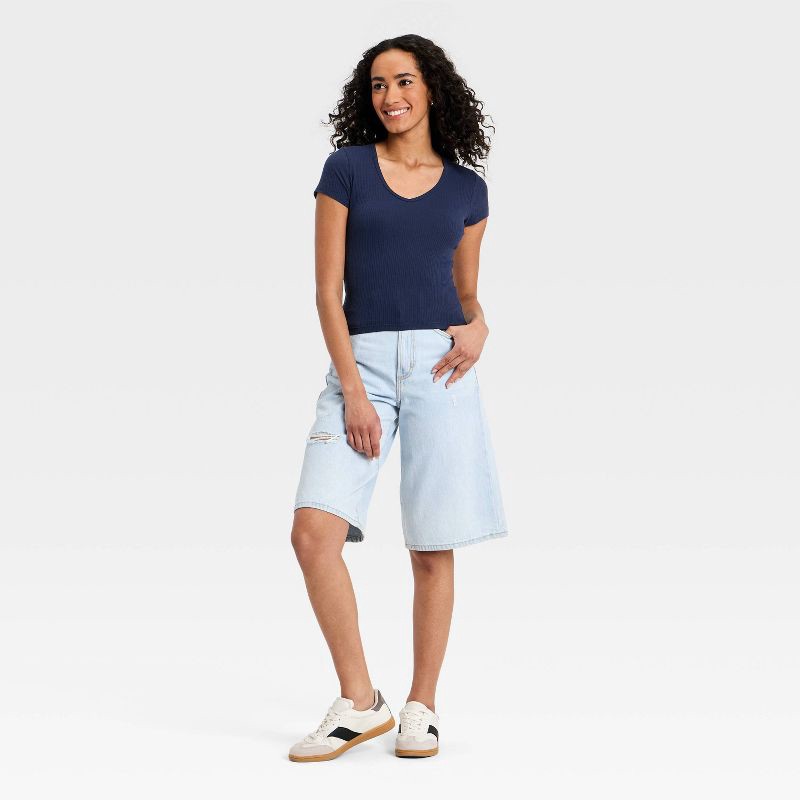 Women's Short Sleeve Rib V-Neck T-Shirt - Universal Thread™ Navy Blue L