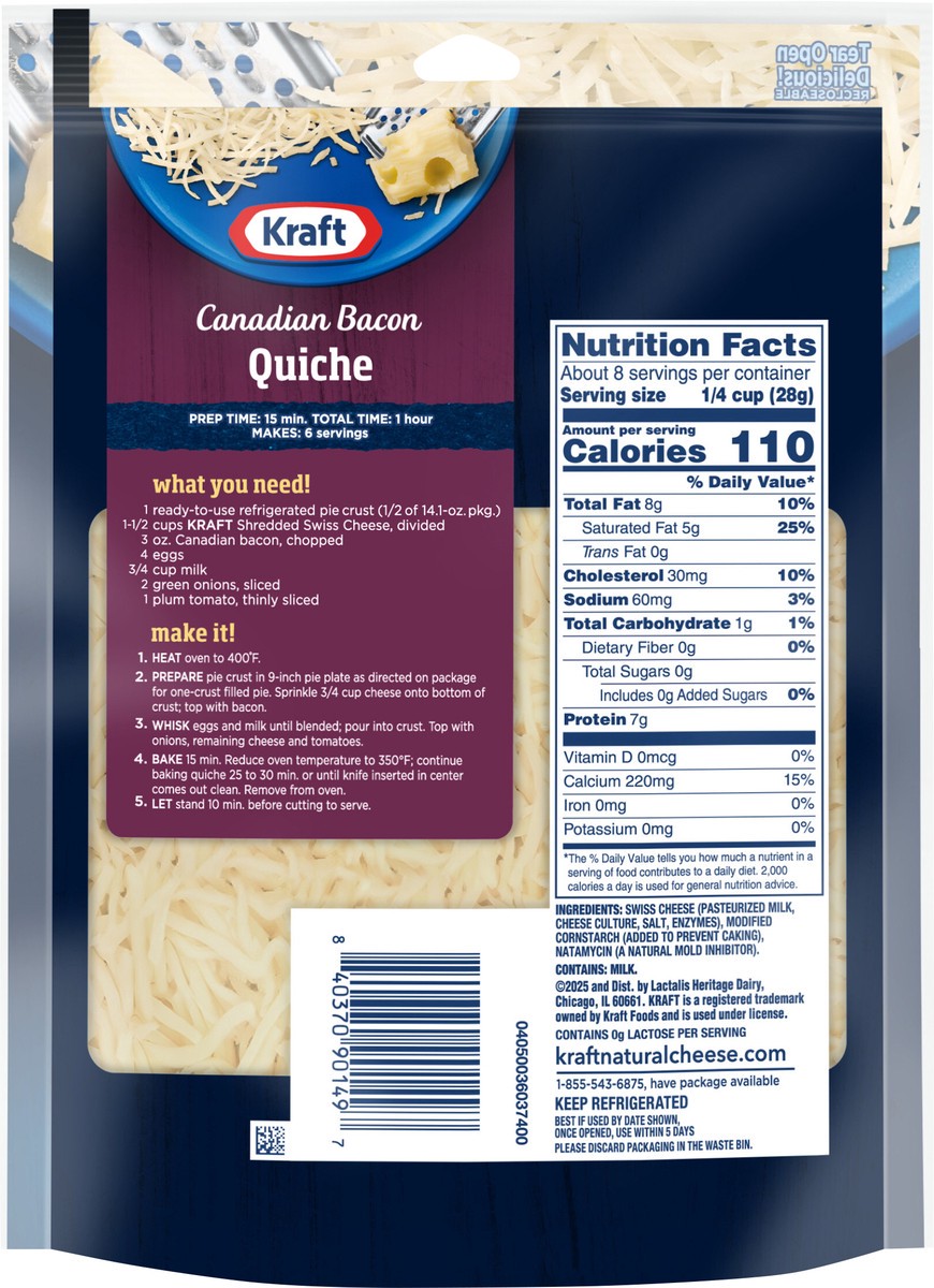 Swiss Cheese (Pasteurized Skim-Milk, Cheese Culture, Salt, Enzymes), Modified Cornstarch (Added to Prevent Caking), Natamycin (a Natural Mold Inhibitor).