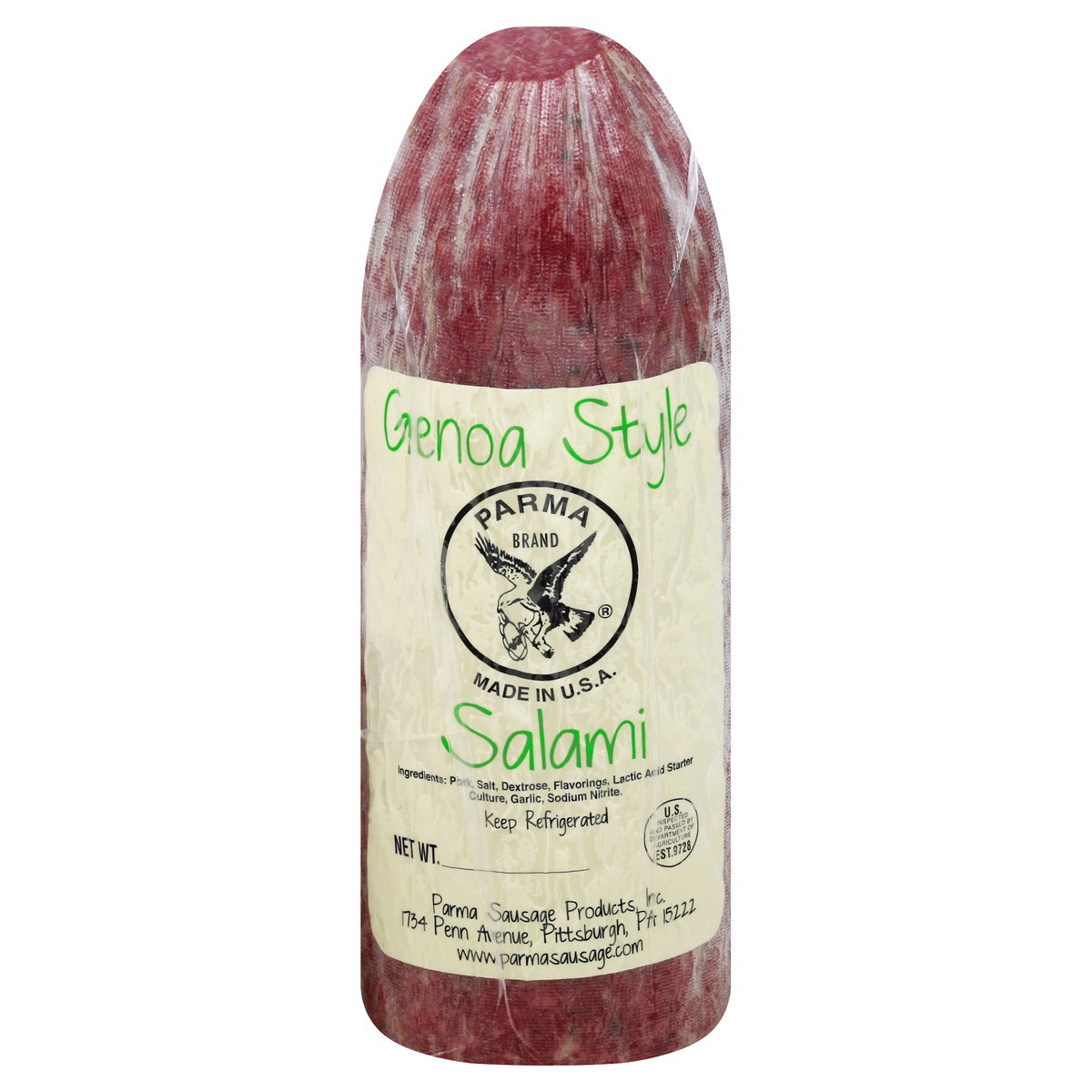 US inspected and passed by Department of Agriculture. www.parmasausage.com.
