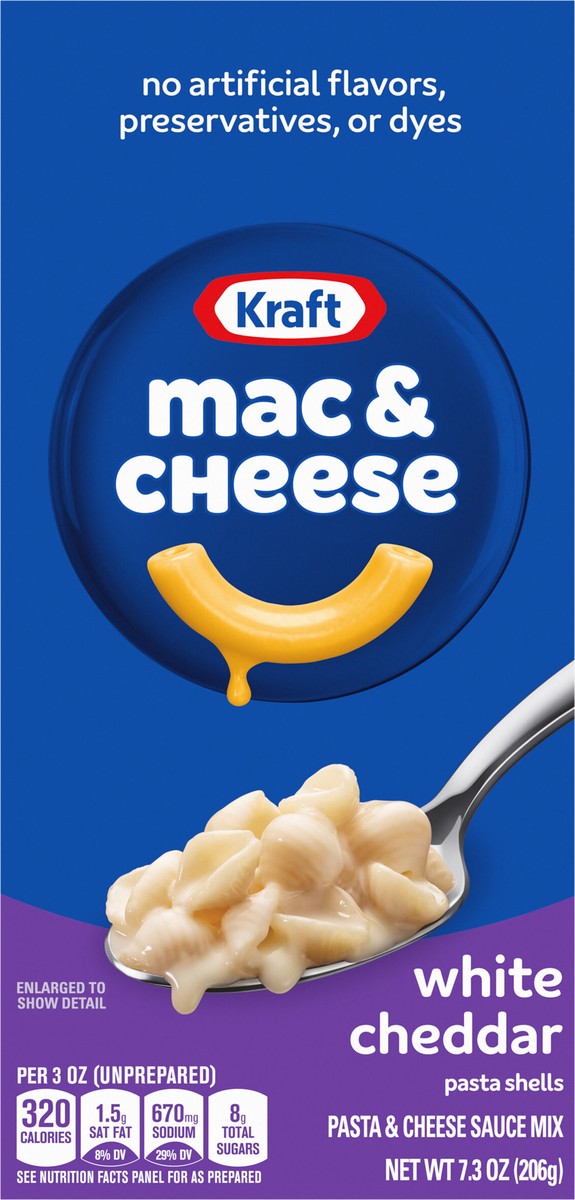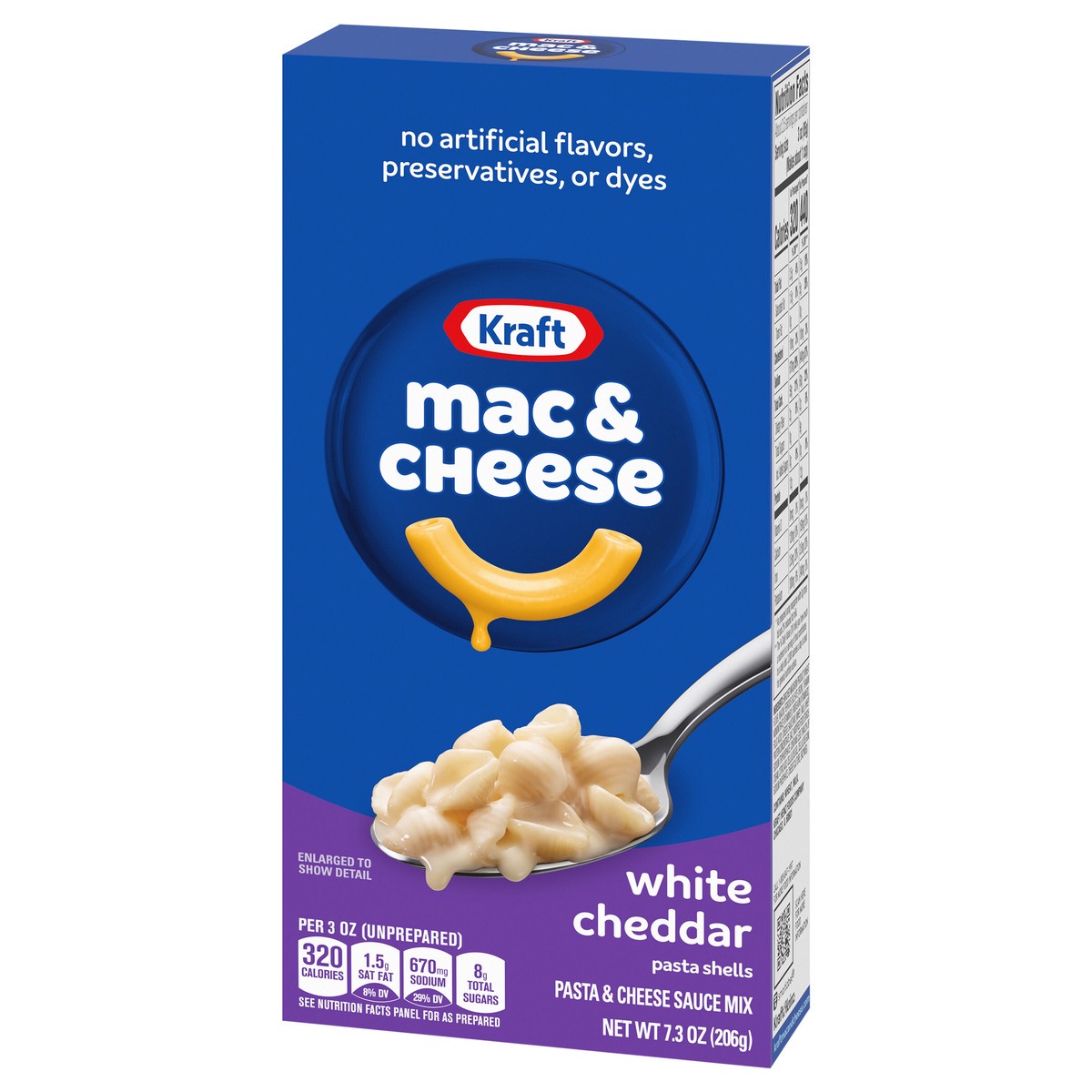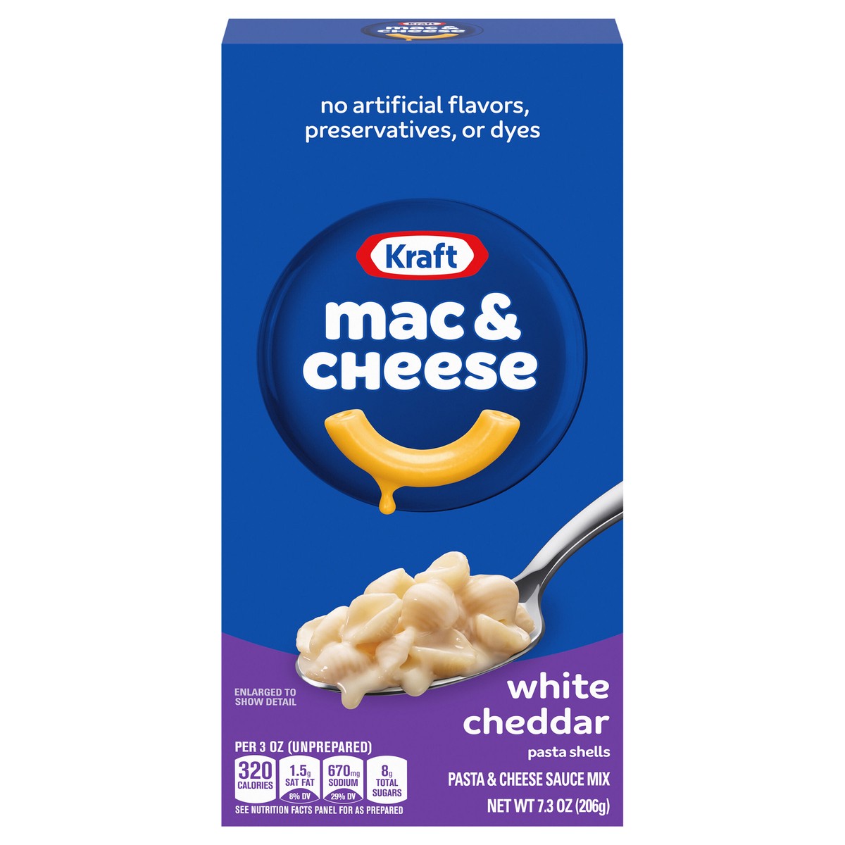 Help yourself to a bowl of comfort. Kraft White Cheddar Mac & Cheese Pasta Shells Dinner is a convenient boxed dinner. A delicious twist on a classic comfort food, kids and adults love the bold, sharp…