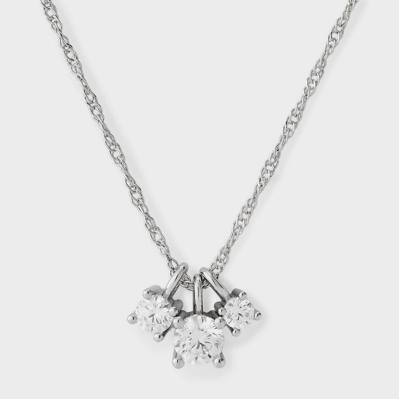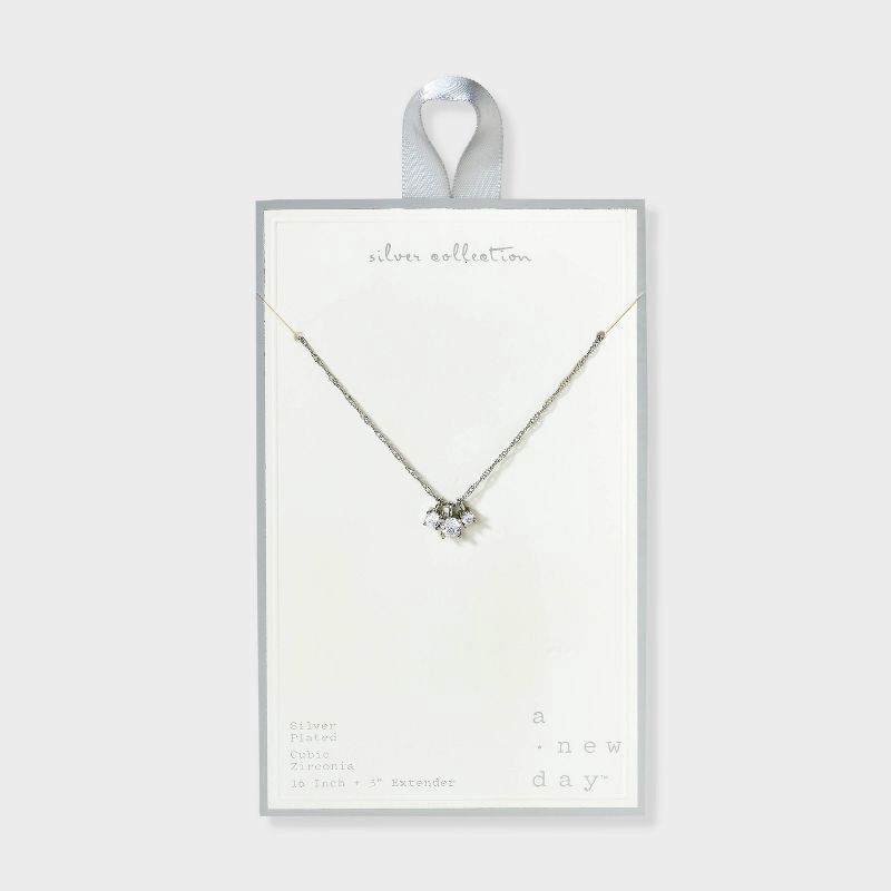 Add graceful style to any look with this CZ Drop Pendant Necklace from A New Day™. This 16-inch silver-tone necklace showcases a stylish Singapore chain with a triple-drop pendant featuring sparkly ro…