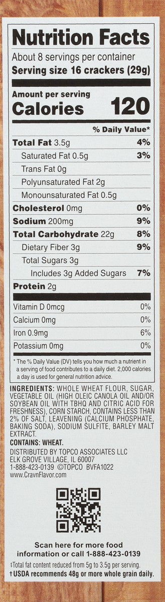 Crav'n Flavor Reduced Fat Thin Wheat Crackers 8 oz