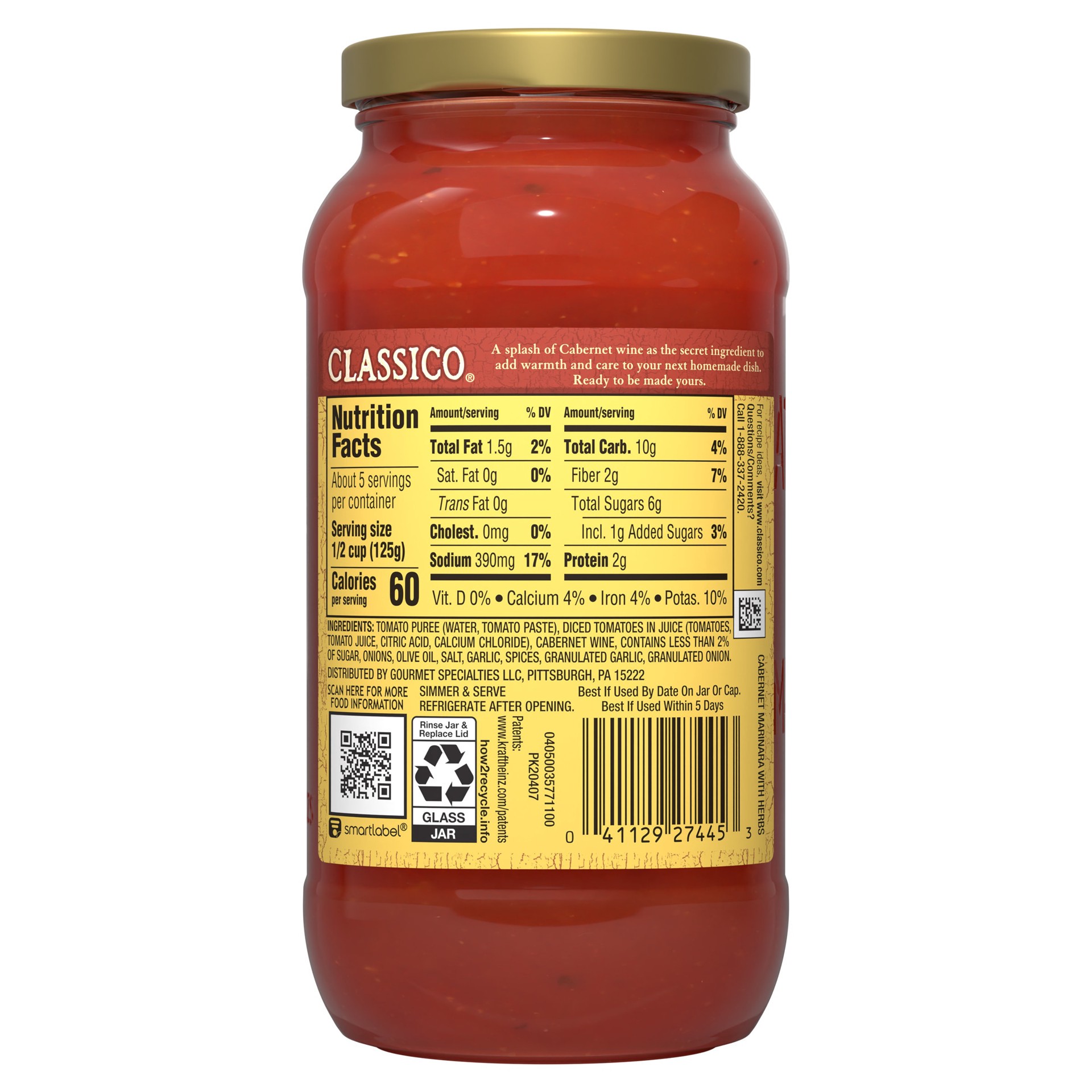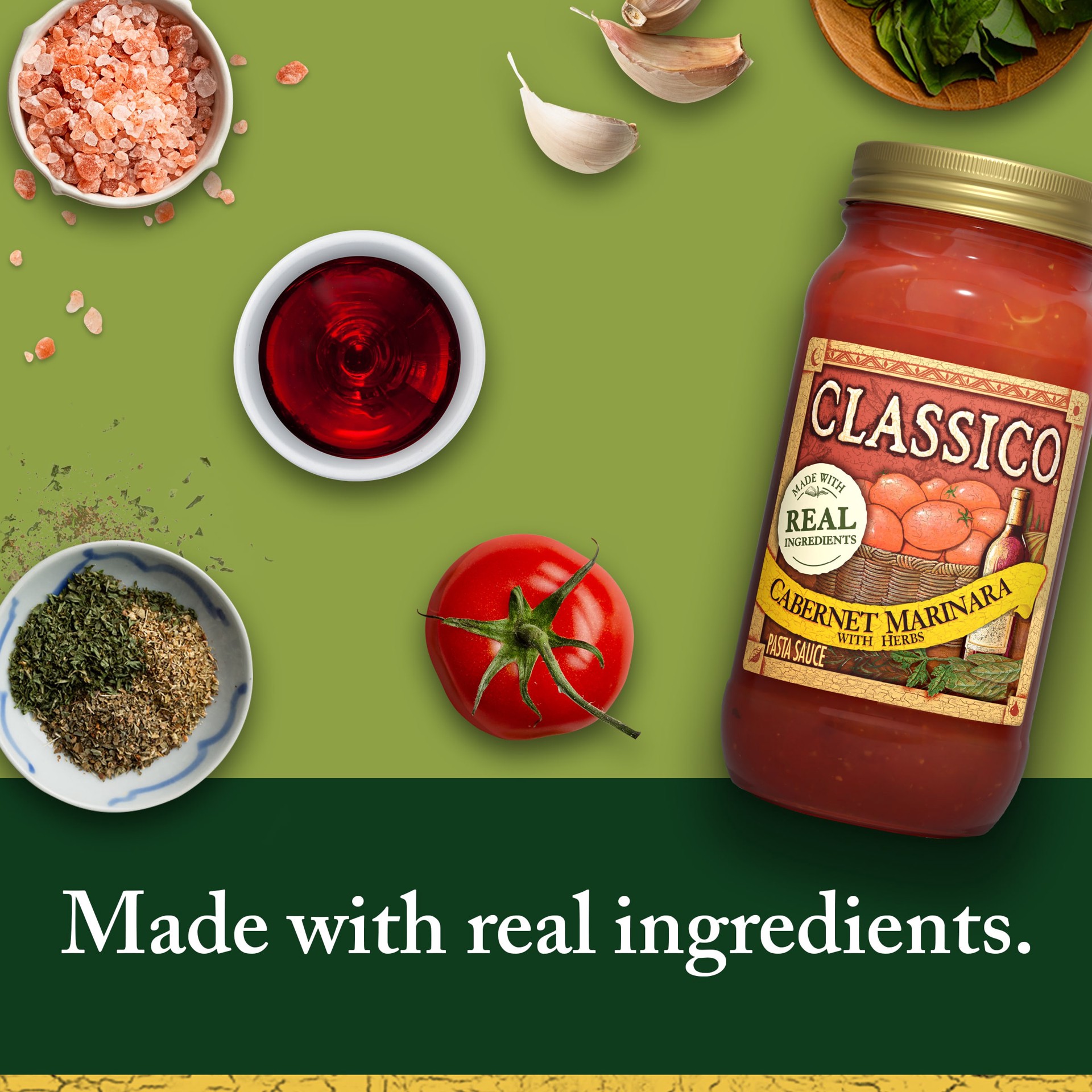 A splash of Cabernet wine is the secret ingredient to add warmth and care to your next homemade dish. Create your next homemade meal with Classico Cabernet Marinara with Herbs Pasta Sauce. Our sauce i…