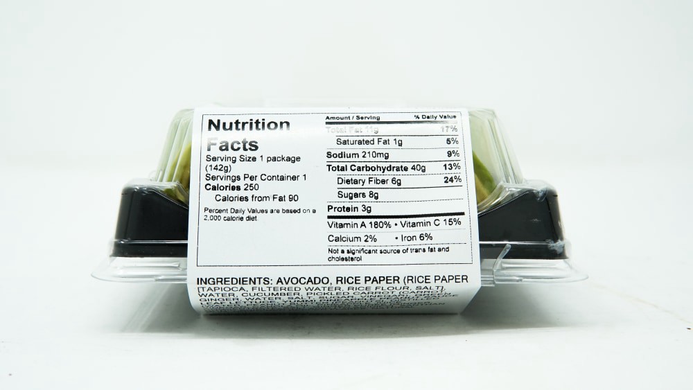 Ingredients: Avocado, Rice Paper (Rice Paper [Tapioca, Filtered Water, Rice Flour, Salt], Water, Cucumber, Pickled Carrot (Carrot, Ginger, Water, Salt, Sugar, Vinegar), Green Leaf Lettuce, Yummi Pinea…