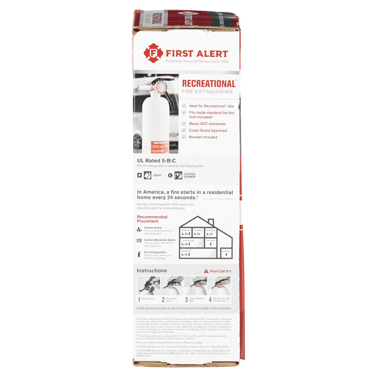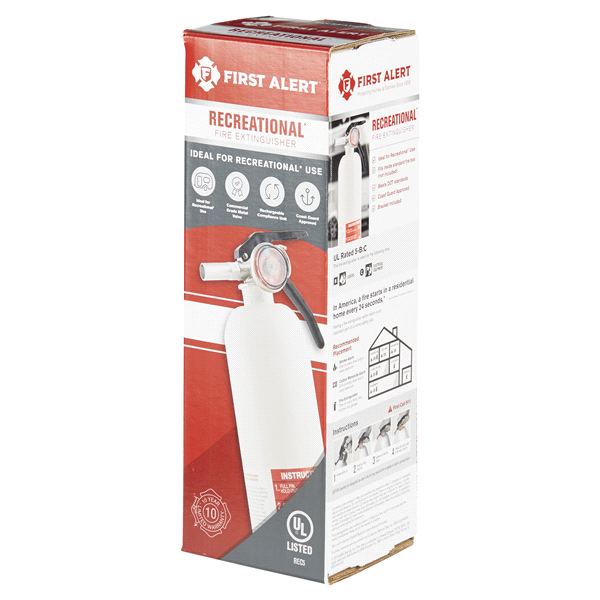 First Alert Rechargeable Recreation Fire Extinguisher This UL rated class 5-B:C extinguisher is effective against flammable liquid fires and live electrical equipment fires. This is a rechargeable por…
