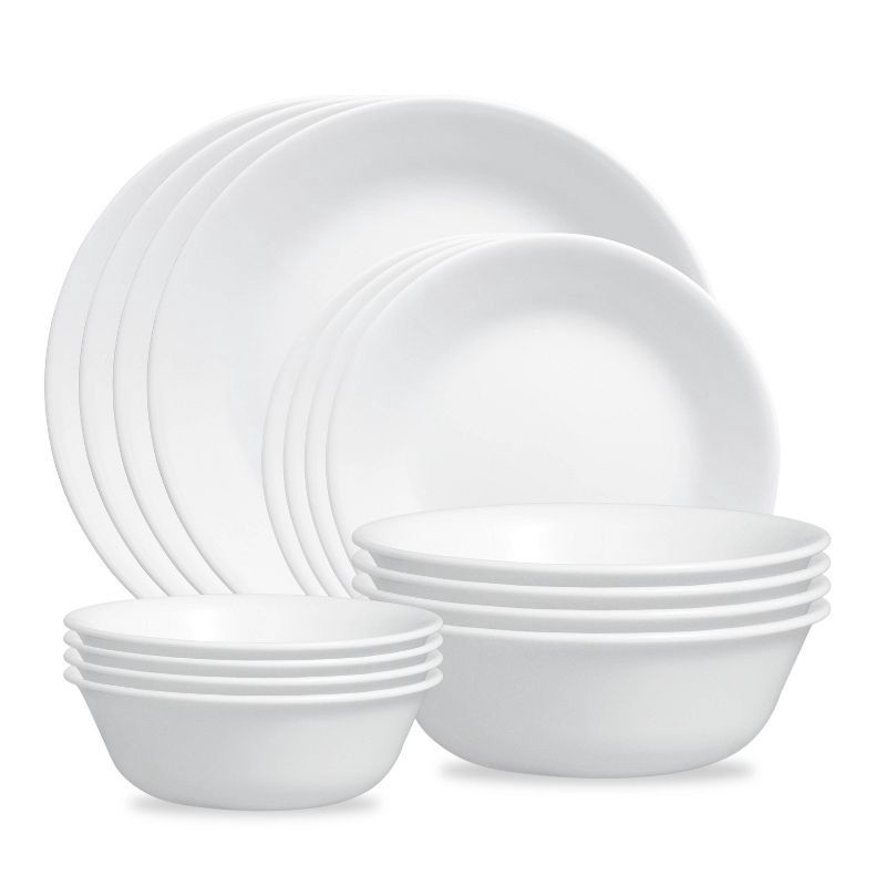 Corelle 16pc Winter Frost White Dinnerware Set: Microwave & Dishwasher Safe, Service for 4, Includes Plates & Bowls