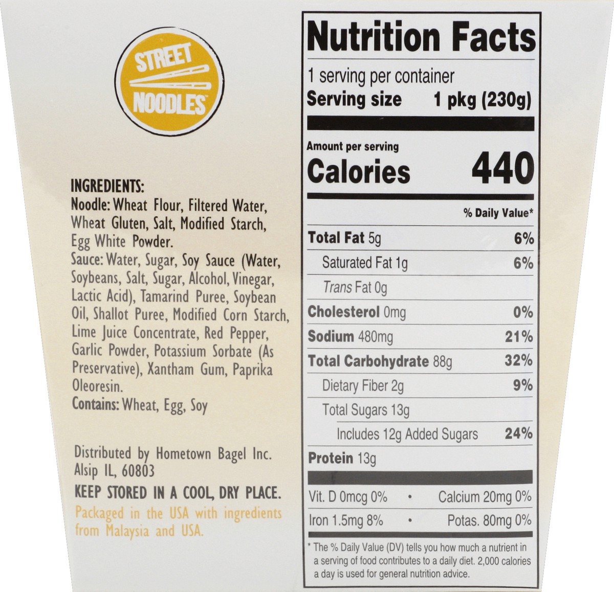 Noodle: Wheat Flour, Filtered Water, Wheat Gluten, Salt, Modified Starch, Egg White Powder, Sauce: Water, Sugar, Soy Sauce (Water, Soybeans, Salt, Sugar, Alcohol, Vinegar, Lactic Acid), Tamarind Puree…