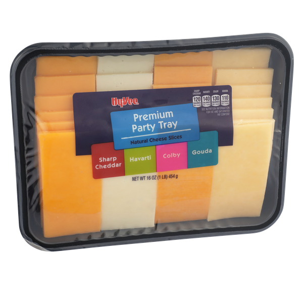 Hy-vee Premium Party Tray Natural Cheese Slices, Entertaining made easy. The Hy-Vee Premium Cheese Tray features a variety of sliced natural cheeses. Ready to serve with crackers and fruit for an inst…