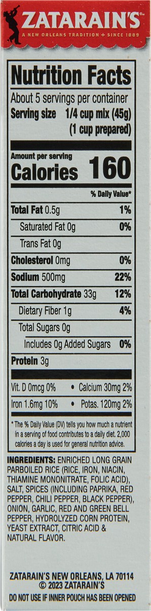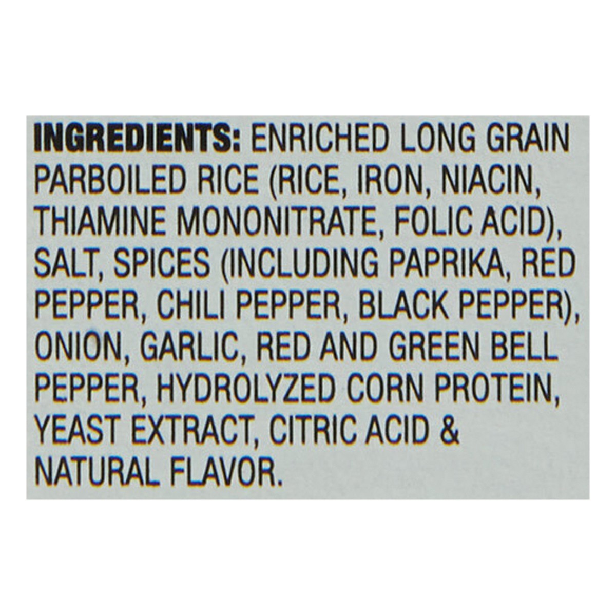 Enriched Long Grain Parboiled Rice (Rice, Iron, Niacin, Thiamine Mononitrate, Folic Acid), Spices (Including Paprika, Red Pepper, Chili Pepper, Black Pepper), Salt, Onion, Red and Green Bell Pepper, G…