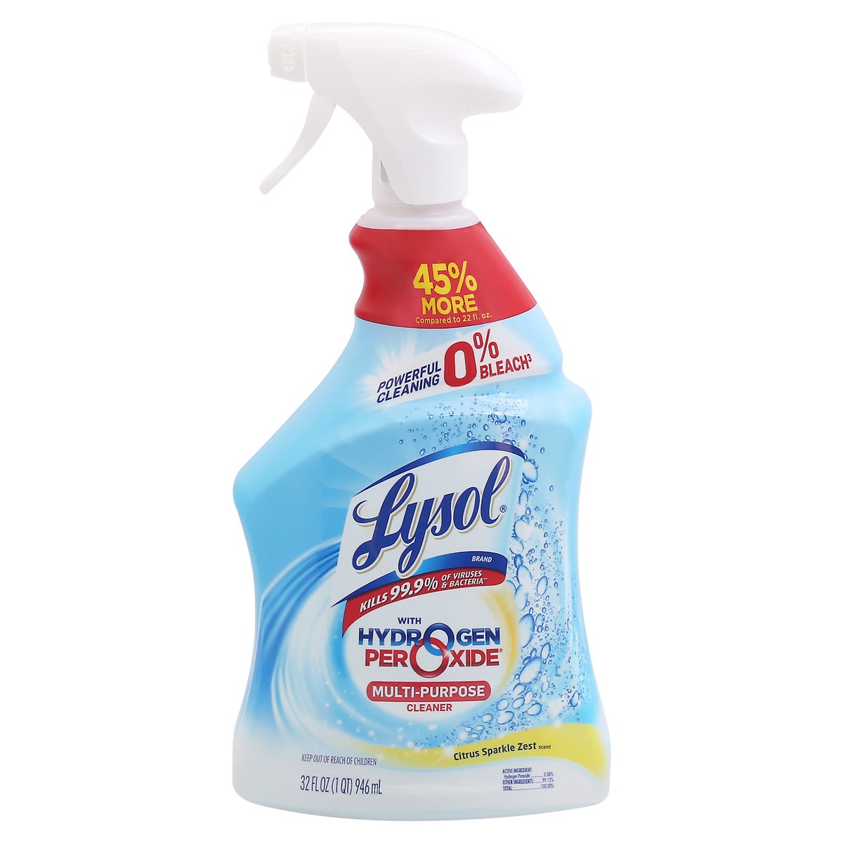 Achieve a fresh, healthy home with 0% bleach! Lysol with Hydrogen Peroxide multipurpose cleaner uses a hydrogen peroxide formula that releases thousands of micro-bubbles to dissolve grease and soap sc…