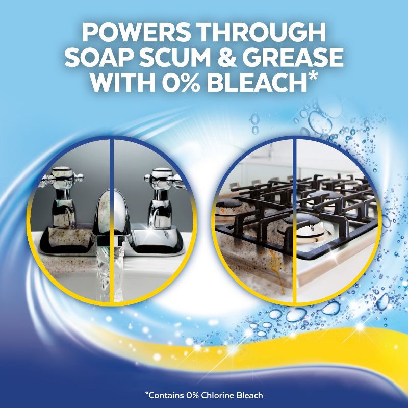 - HYDROGEN PEROXIDE BASED FORMULA, 0% BLEACH*: Hydrogen Peroxide based formula powers through tough stains like grease and soap scum without the harshness of bleach. (*Contains no Chlorine bleach).