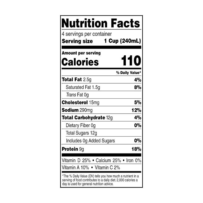 - Vitamin A & D, Excellent Source of Calcium, 1% Milkfat