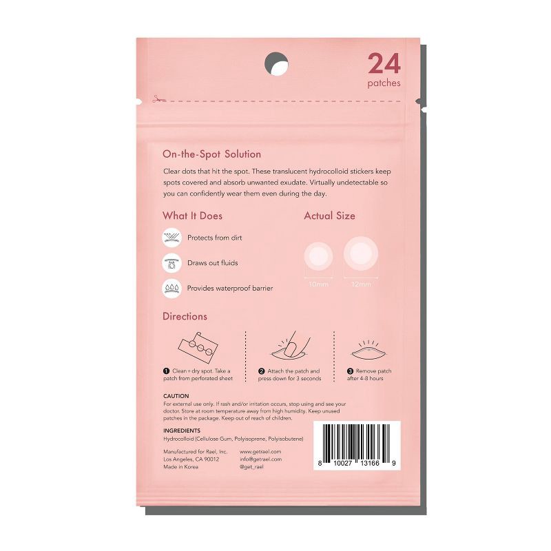 Rael's Miracle Patch Invisible Spot Cover, a patch for surface breakouts, helps reduce the look of blemishes for a smoother appearanceWith tapered edges and a clear, matte finish, it's perfect for dis…