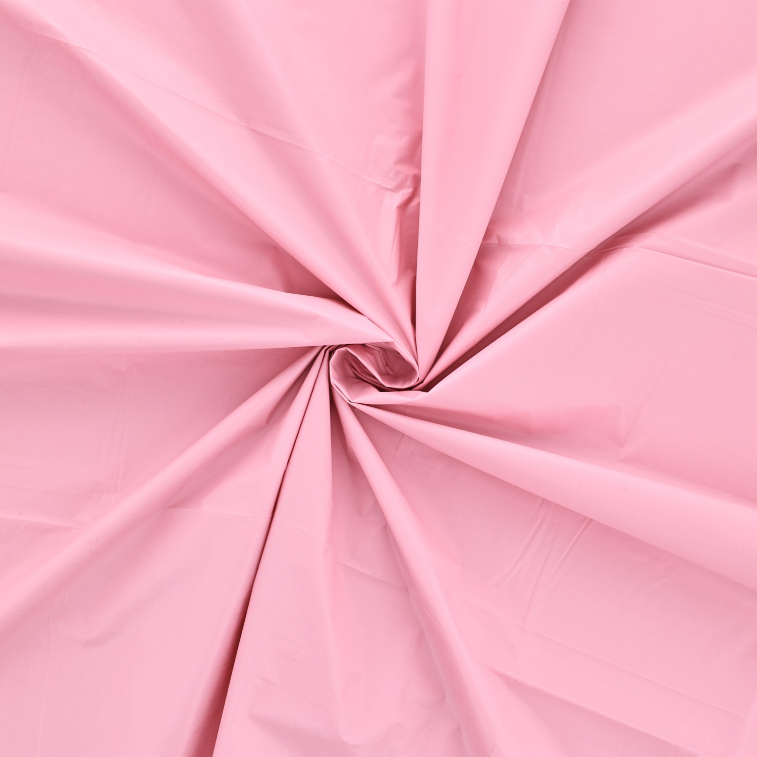 Protect your round table in style with this baby pink plastic table cover. Ideal for parties and events, it guards against spills and stains while adding a festive touch to your celebration.