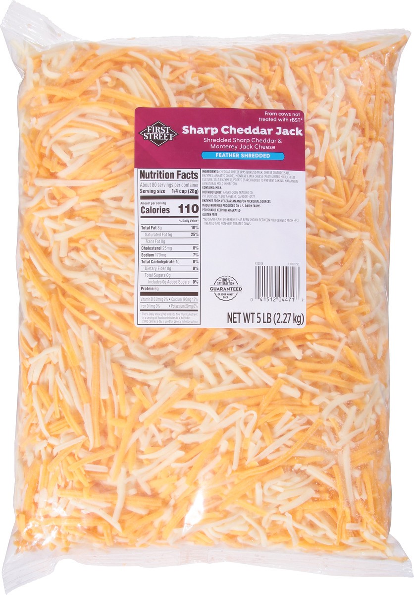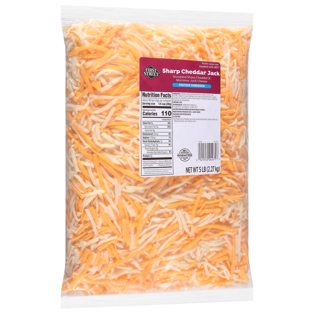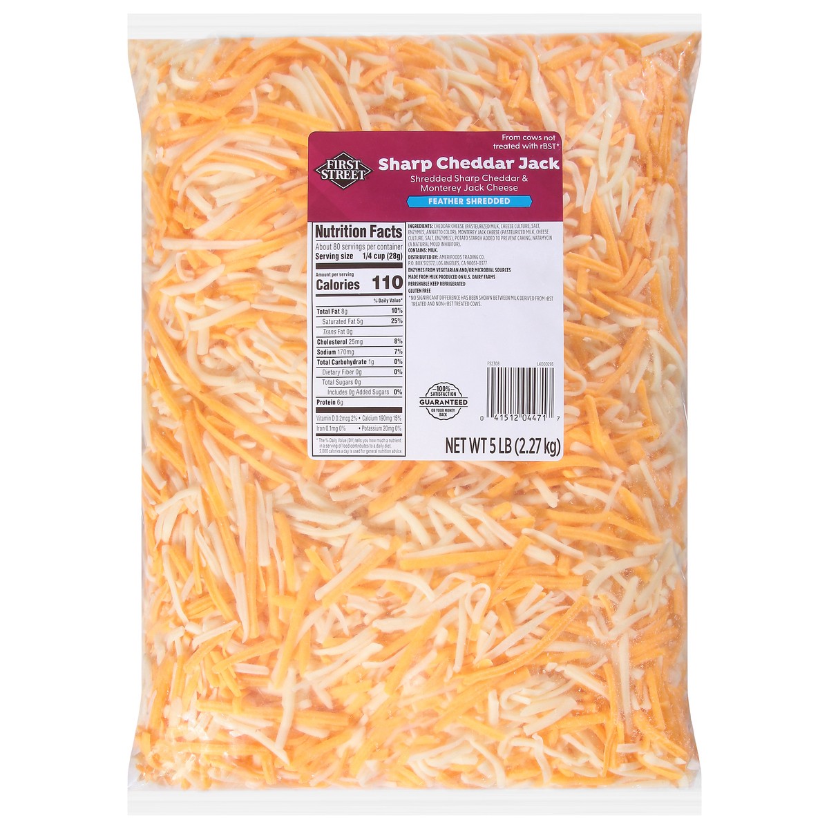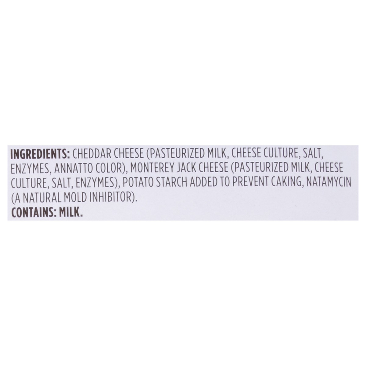 Cheddar Cheese (Pasteurized Milk, Cheese Culture, Salt, Enzymes, Annatto Color), Monterey Jack Cheese (Pasteurized Milk, Cheese Culture, Salt, Enzymes), Potato Starch Added to Prevent Caking, Natamici…