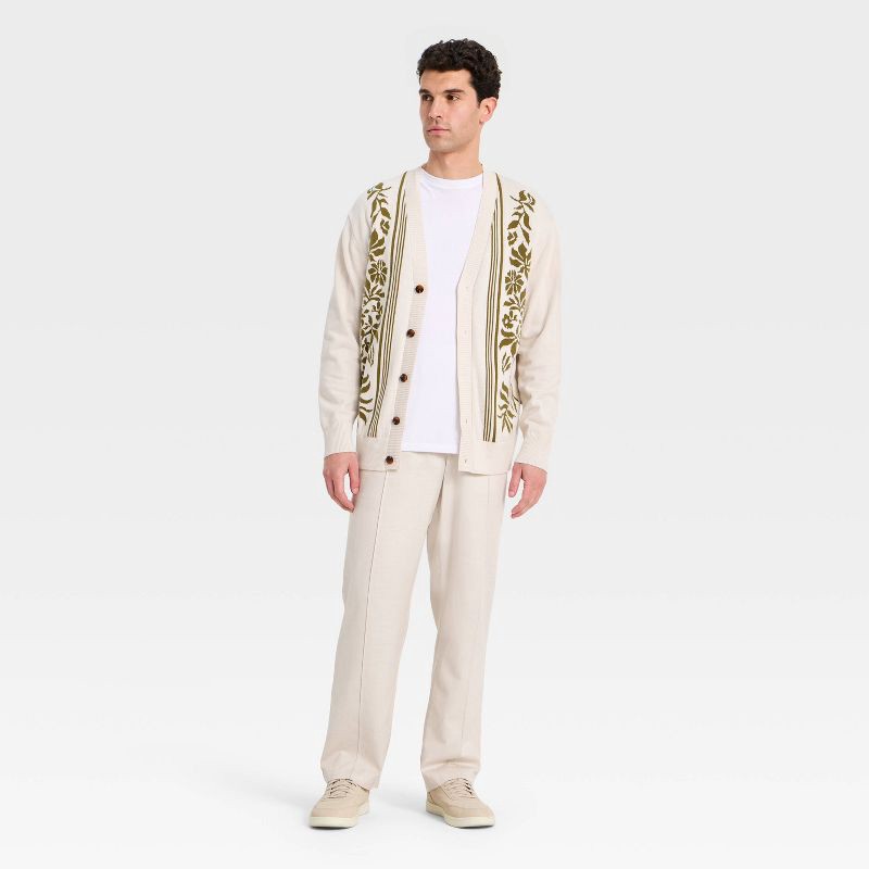 Houston White Men's Open Neck Cardigan - Brown/Cream Floral XXL