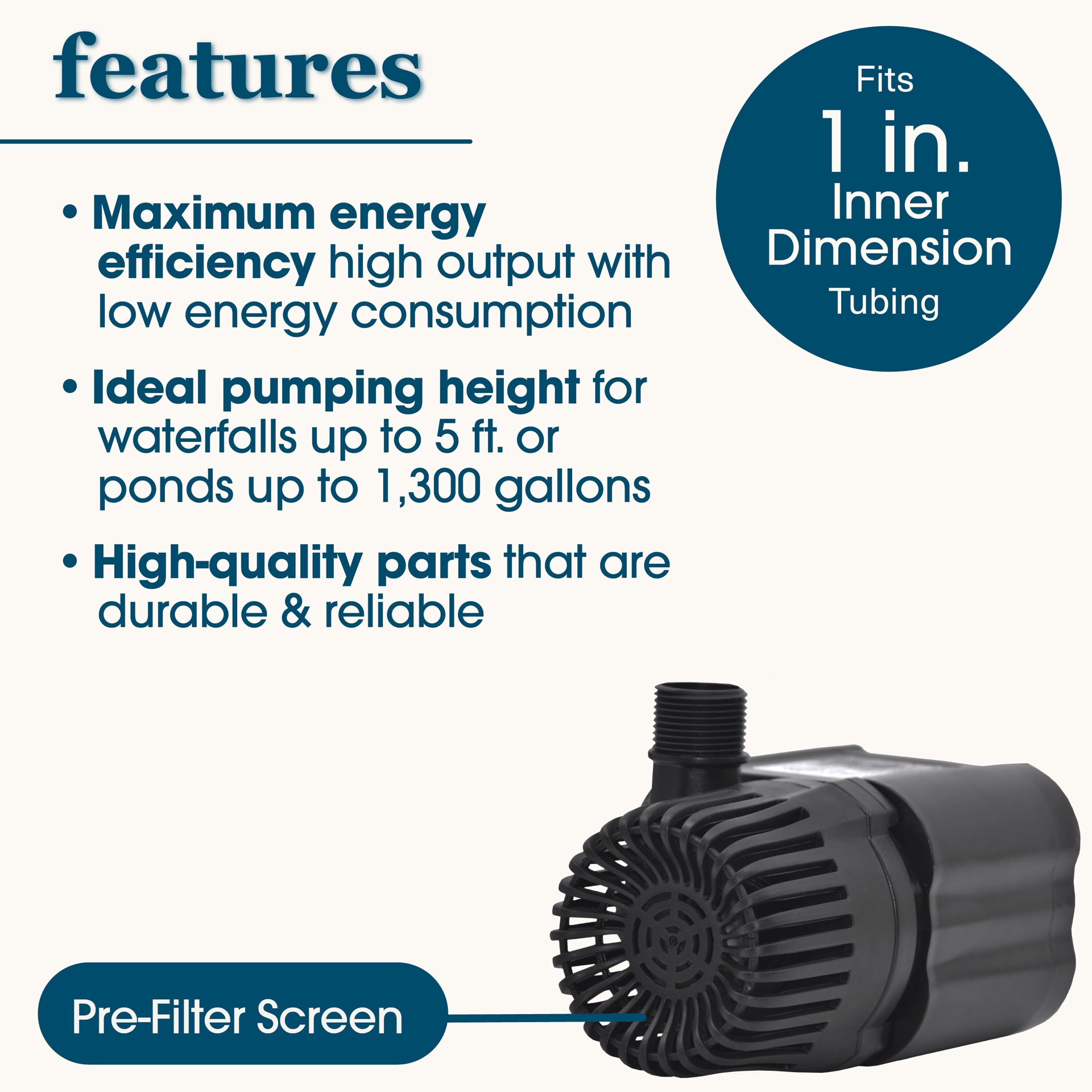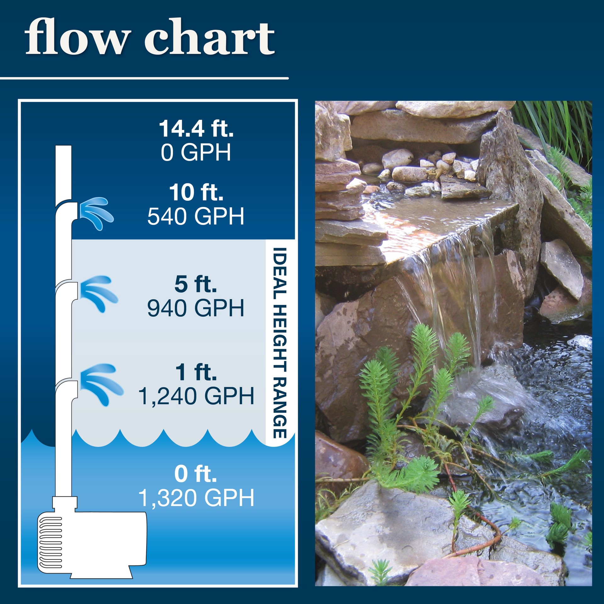 Create dramatic waterfalls up to 5-ft in height with this smartpond 1,320-GPH Pond and Waterfall Pump. smartpond's Waterfall Pump is designed and built for optimal performance and efficiency; passes l…