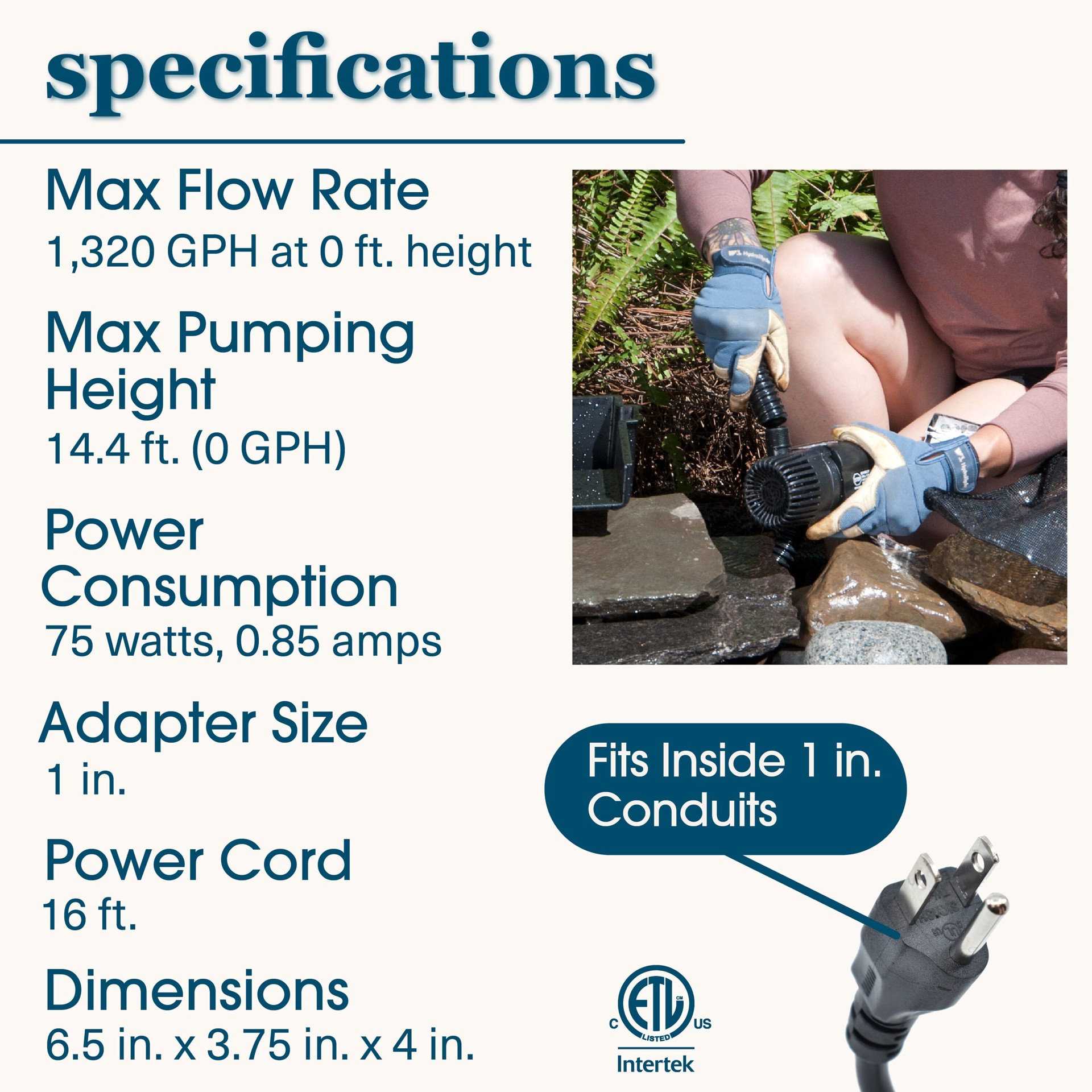 smartpond 1320 -GPH Submersible Corded Electric Waterfall Pump