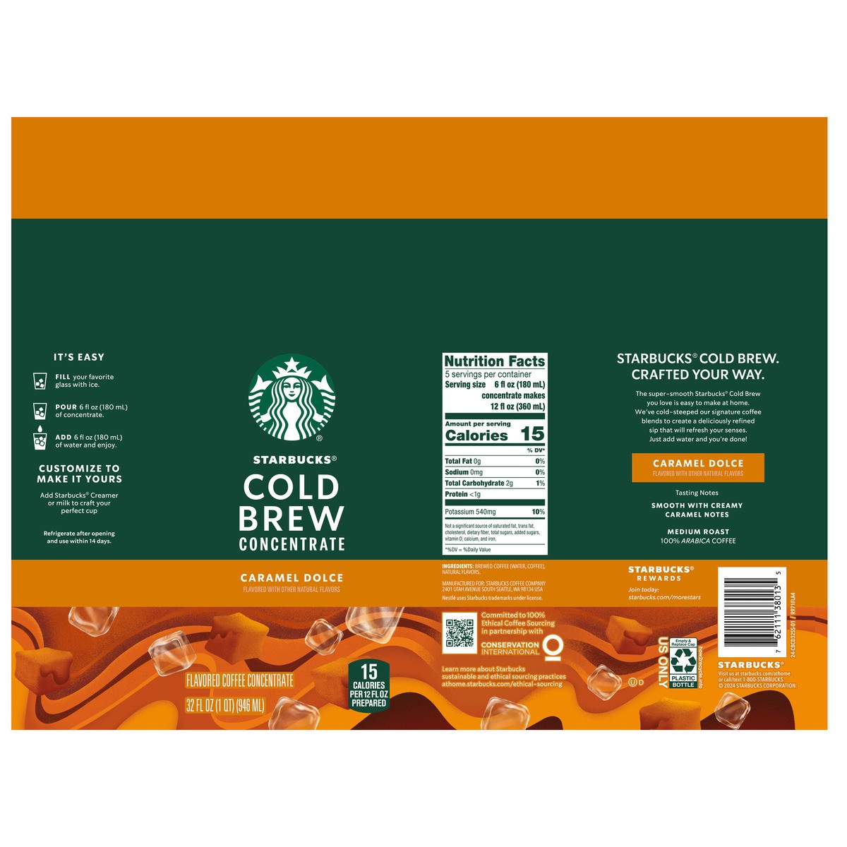 Starbucks Multi Serve Concentrate Caramel Dolce Flavored Cold Brew Coffee Bottle - 32 Oz