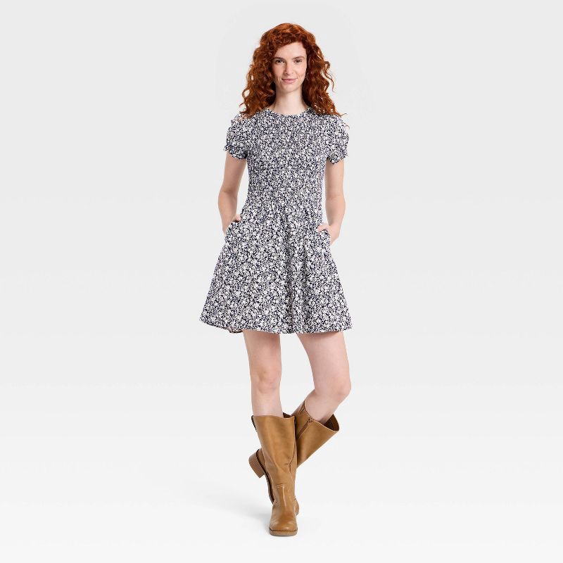 Own the moment with this puff Short-Sleeve Smocked Mini Sundress from Universal Thread™. Made of 100% cotton, this mini dress offers all-day comfort. It is fashioned with a crew neckline with keyhole …